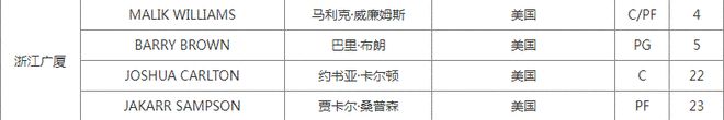 广厦在注册马利克-威廉姆斯后,取消了本赛季表现出色的塔克注册。根据报道显示,塔克是因为生病短暂被取代。