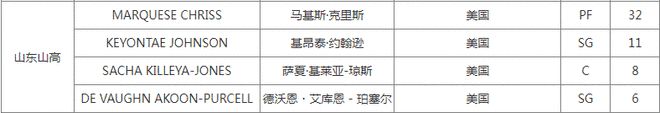 除此之外,山东重新注册了核心外援克里斯,他此前遭遇中指关节骨折。本赛季至今,克里斯场均得到20.6分8篮板2.6助攻。山东取消了新外援斯蒂尔注册,他本赛季场均得到12.9分5.7篮板。