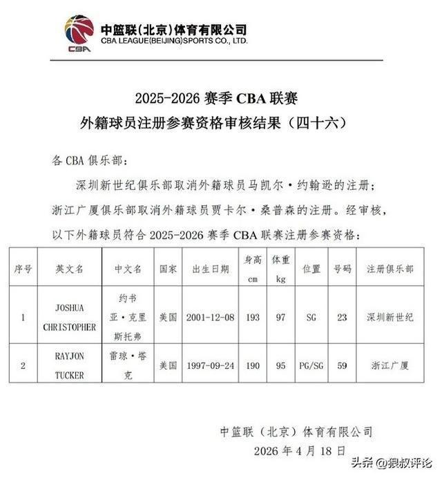 此外,深圳新小外援约书亚·克里斯托弗已经完成注册,此役极大概率会迎来CBA首秀。